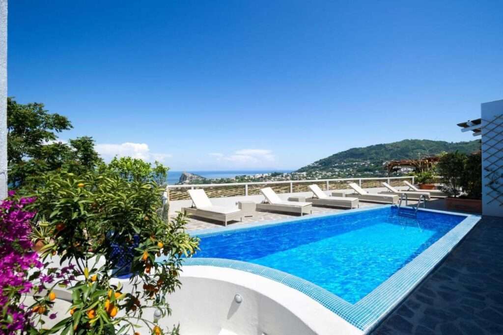 La sua posizione a metà strada tra le colline di Fiaiano e del Montagnone, a meno di due chilometri dal Porto d’Ischia, garantiscono sia la tranquillità di un soggiorno nel rigoglioso verde ischitano, sia una vista a dir poco incantevole, in un ambiente raffinato e curato in tutti i dettagli. E la piscina panoramica esterna d’acqua dolce è l’ideale alternativa per una giornata lontano dalle spiagge affollate.