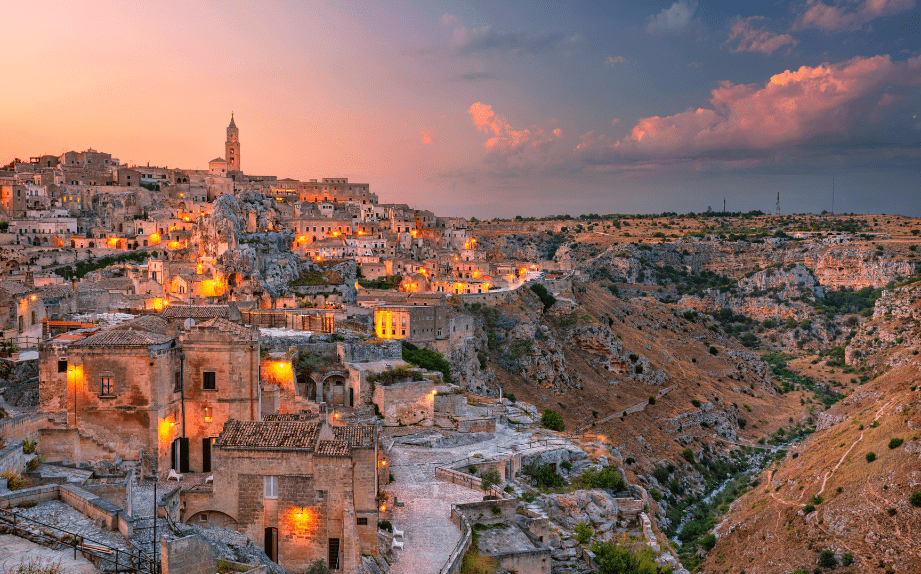 Capitale europea della cultura nel 2019, Matera è celebre per i suoi Sassi, antiche abitazioni scavate nella roccia che conferiscono al borgo un fascino unico. Da non perdere le visite ai numerosi siti storici e culturali.