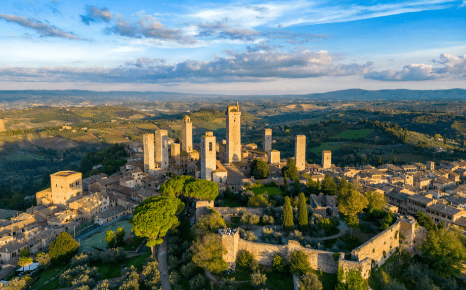 Conosciuto come “La Manhattan del Medioevo” per le sue torri medievali che dominano il panorama, San Gimignano è un borgo toscano conosciuto anche per il suo gelato artigianale e il suo vino Vernaccia.